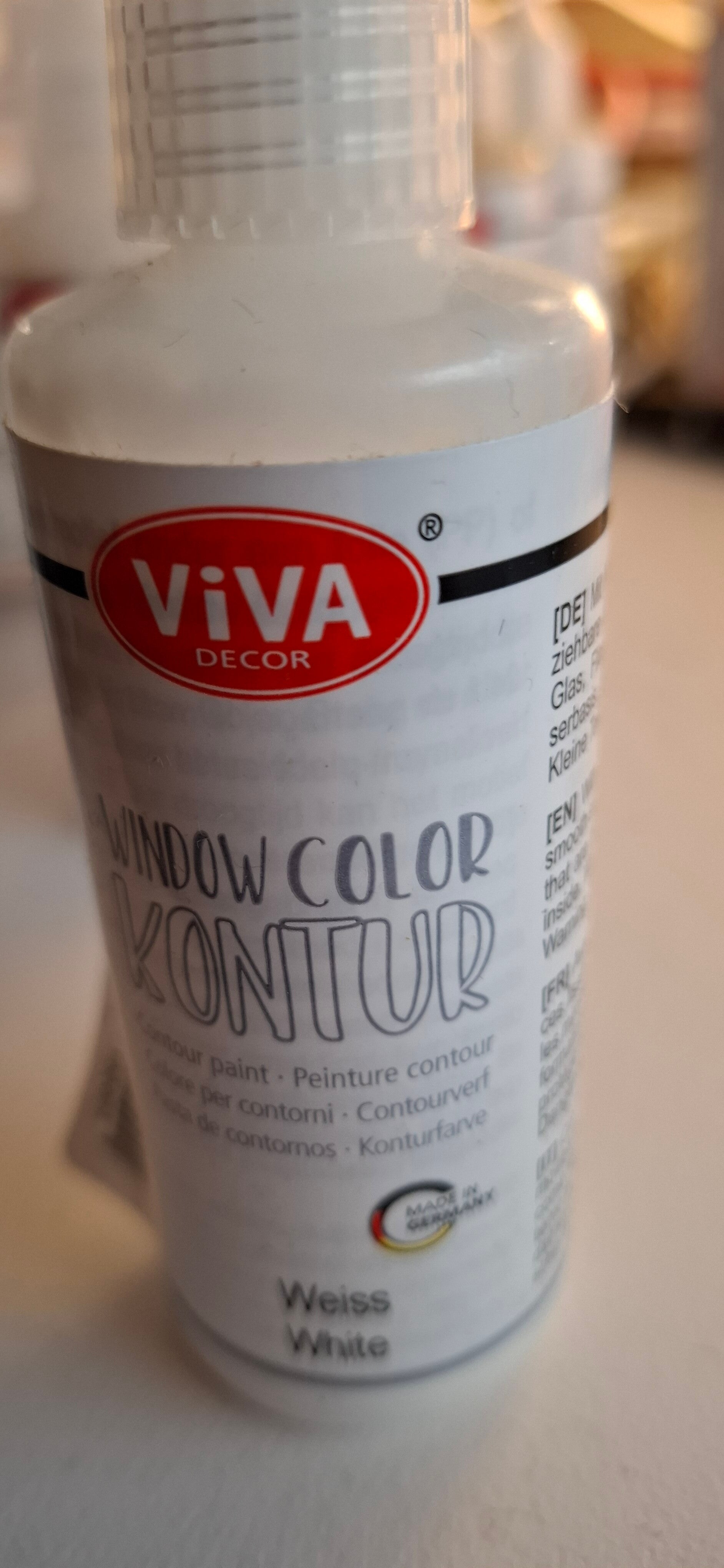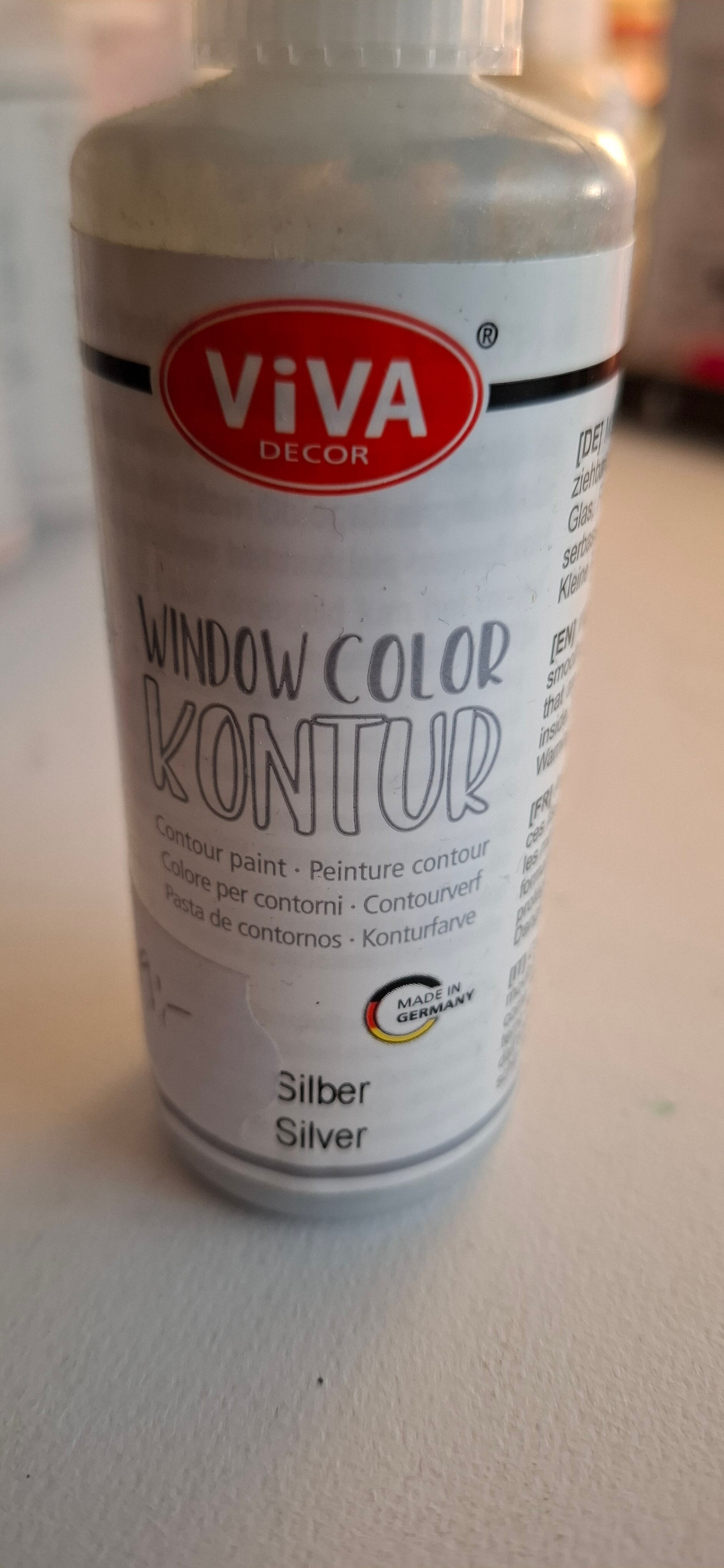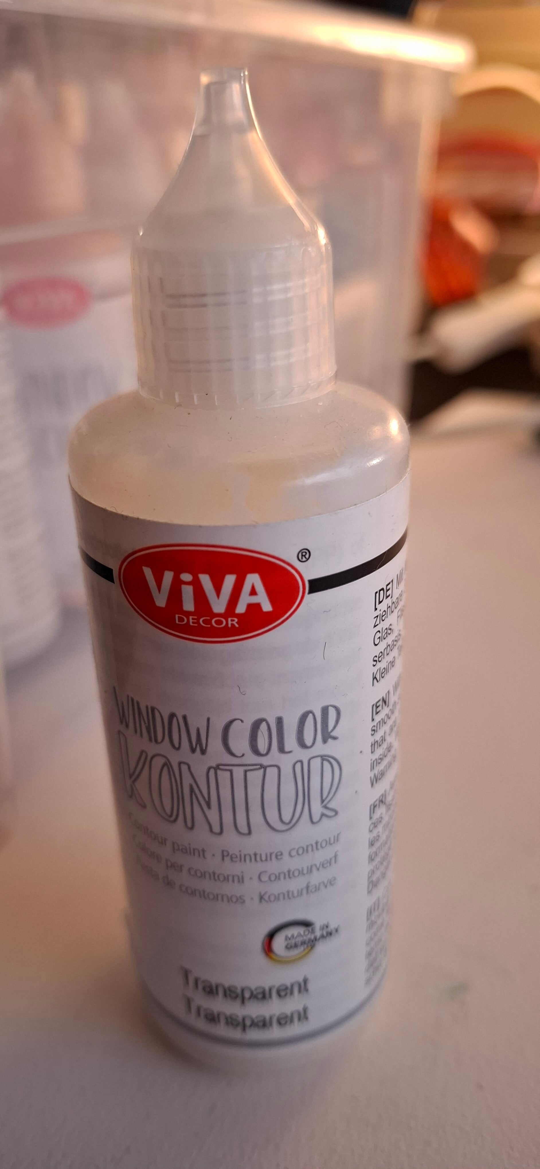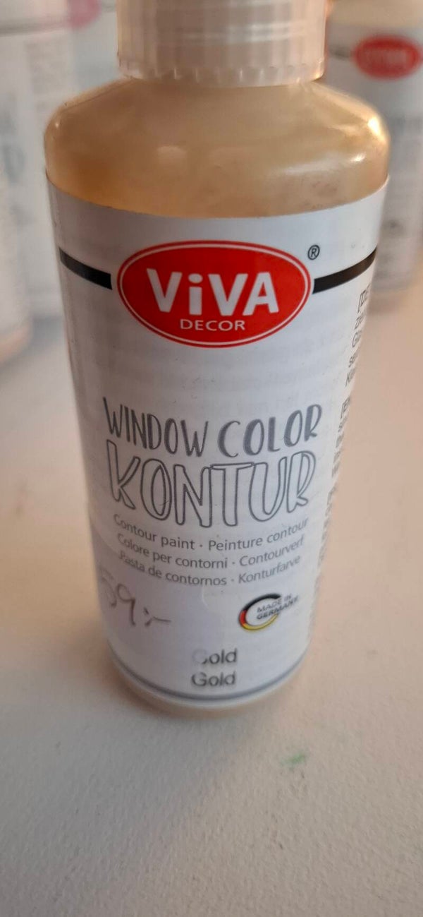 Lag en kontur av noe du vil lage ( feks en blomst). La det tørke i 2 timer. Fyll deretter med farge og la tørke i 24 timer. Det beste er å gjøre det på et slett underlag. Etter 24 timer kan du overføre det til vindu, glass o.l. Bruksanvisning under labelen.